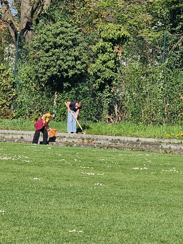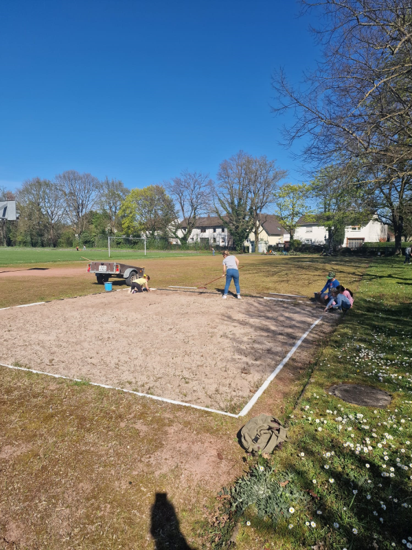 Am Mittwoch, den 8. April, hieß es: nichts mit Osterferien – wir machen unseren Sportplatz neben der Sporthalle wieder Sommer bereit!